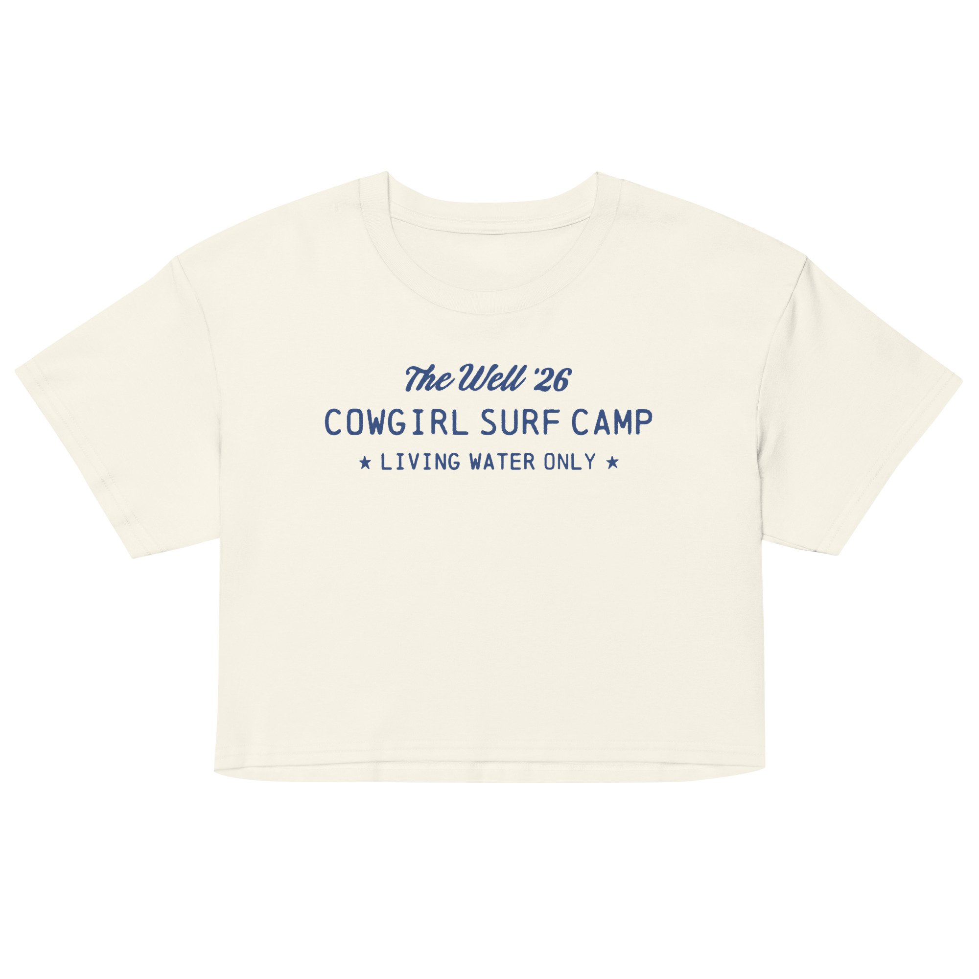 A little western, a little coastal, and rooted in something deeper. The Cowgirl Surf Camp Crop Tee brings together sun-soaked days, salty air, and the reminder to seek living water only.